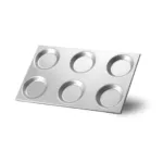 Fabricată din aluminiu de calitate superioară, această tavă pentru cuptor oferă o distribuție uniformă a căldurii, contribuind la o coacere perfectă. Manopera solidă și marginile bine finisate asigură o manipulare sigură și confortabilă, chiar și în regim intensiv de lucru. Cu 6 forme circulare cu diametrul de 125 mm, este ideală pentru produse porționate precum chifle, burger buns sau deserturi individuale.