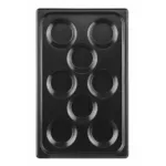 Fabricata din aluminiu turnat si finisata cu strat antiaderent PTFE, tava permite o coacere eficienta si previne lipirea compozitiei. Datorita materialului de inalta calitate, caldura se distribuie uniform in toate cele 8 forme, fiecare cu diametrul perfect pentru portii controlate. Este compatibila cu masina de spalat vase, ceea ce o face extrem de usor de intretinut, chiar si in medii de lucru cu ritm intens.