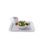 Cu dimensiuni ideale pentru zone cu autoservire, această tavă de servire polyform combină forma dreptunghiulară standardizată cu un finisaj de inspirație naturală, imitație granit. Culoarea discretă și textura elegantă completează perfect designul spațiilor moderne de servire, contribuind la o experiență estetică plăcută pentru clienți.
