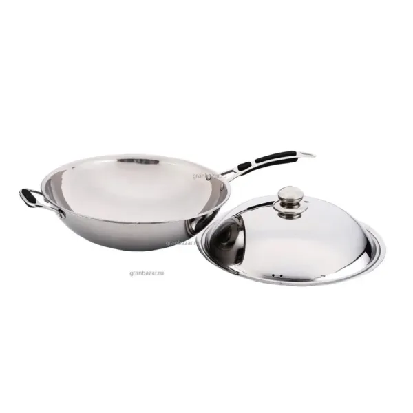 Tigaia este echipată cu un mâner din oțel inoxidabil cu manșon, care asigură o manevrare sigură și confortabilă chiar și la temperaturi înalte. De asemenea, capacul din oțel inoxidabil reține eficient căldura și aburul, păstrând aromele și suculența preparatelor, ceea ce contribuie la o experiență culinară superioară. Finisajul robust și structura de înaltă calitate fac această tigaie wok ideală pentru utilizarea zilnică intensă.