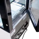 Exteriorul in finisaj alb marmorat si interiorul din inox fac ca aceasta vitrina frigorifica prajituri sa fie nu doar durabila, ci si usor de integrat in orice spatiu comercial. Rafturile din sticla cu inaltime reglabila si usile spate batante ofera flexibilitate, in timp ce rotile si picioarele ajustabile faciliteaza mutarea si stabilitatea aparatului.