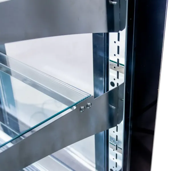 Carcasa exterioara din MDF negru si interiorul din inox confera durabilitate si un aspect premium, potrivit pentru spatii comerciale moderne. Rafturile din sticla reglabile permit o organizare flexibila a produselor, iar usile glisante din sticla dubla asigura acces rapid si reduc pierderile de temperatura. Rotile integrate si picioarele reglabile faciliteaza manevrarea si adaptarea la orice spatiu.