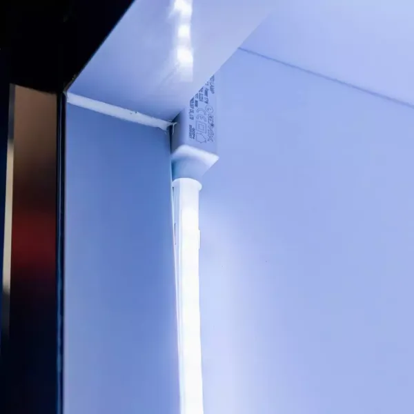 - Iluminare: LED, banda verticala laterala