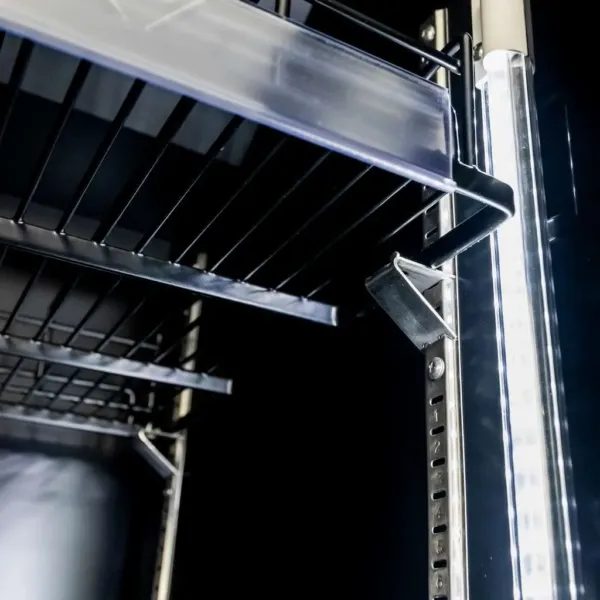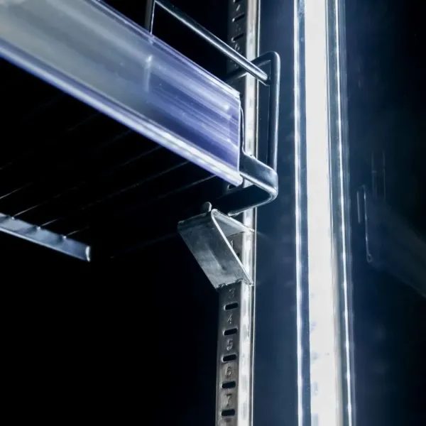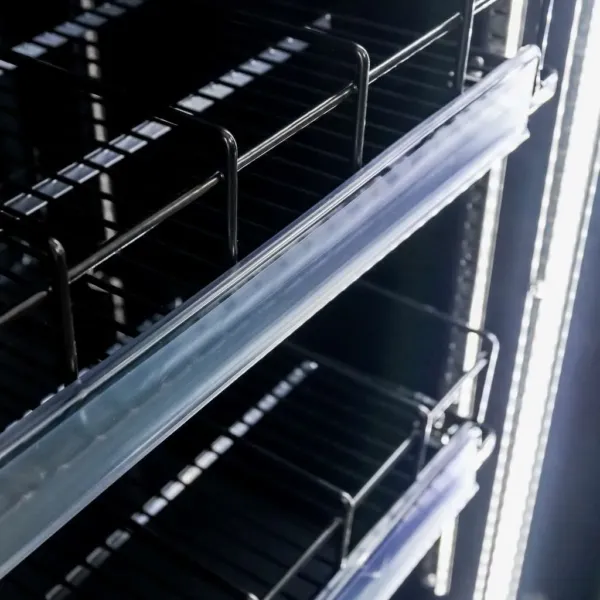 Vitrina Diego R62 Prestige black dispune de cinci polițe reglabile și întărite, adaptabile pentru produse de diferite dimensiuni. Reglarea ușilor și a picioarelor, împreună cu roțile integrate, permite mobilitate și plasare facilă în diverse spații comerciale. Controlul electronic prin programator CAREL și afișajul digital permit monitorizarea precisă a temperaturii interioare, asigurând condiții optime pentru toate tipurile de alimente refrigerate.