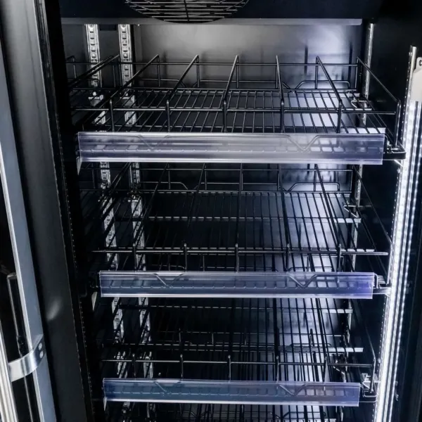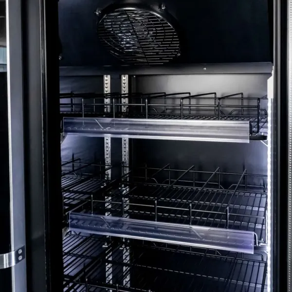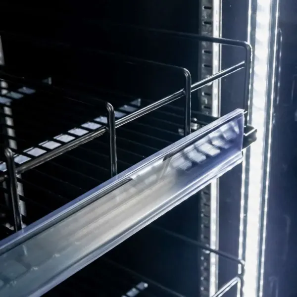 Designul Full Glass fără ramă și carcasa neagră elegantă conferă vitrinei un aspect premium, atrăgând atenția clienților. Iluminarea LED verticală evidențiază fiecare produs, iar sistemul de răcire dinamic menține temperatura constantă între 0 și +10°C, asigurând prospețimea băuturilor și produselor alimentare. Ușile auto-închise ajută la conservarea energiei și menținerea temperaturii interioare constante, chiar și în perioadele aglomerate.