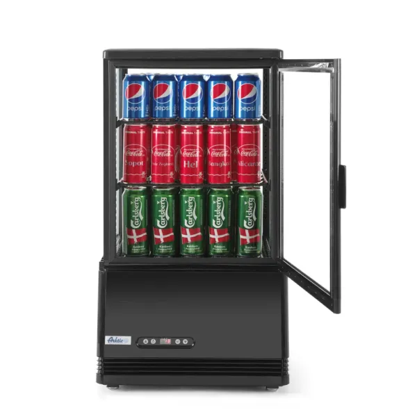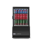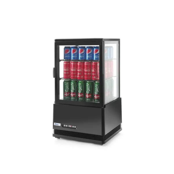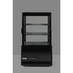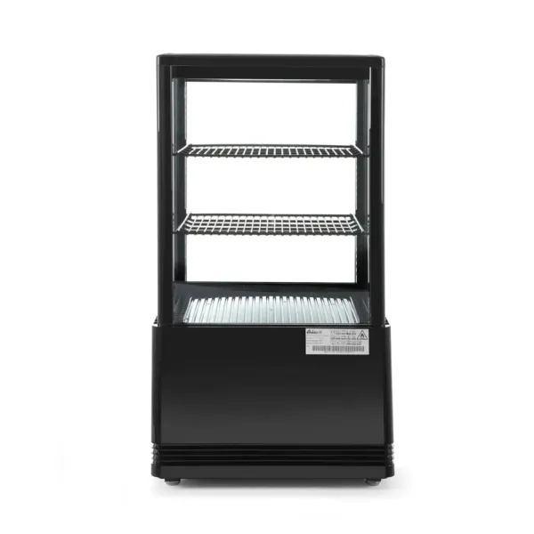 Cu un volum util de 58 litri si dimensiuni reduse, acest model este perfect atat pentru spatiile restranse, cat si pentru zonele de servire directa, cum ar fi o vitrina frigorifica terasa sau un bar de interior. Finisajul negru elegant si carcasa din otel inoxidabil vopsit ofera un aspect modern si profesional, integrandu-se cu usurinta in orice decor. Iluminarea LED plasata strategic in partea superioara pune in valoare continutul, atragand atentia clientilor si contribuind la o prezentare vizuala atractiva a produselor refrigerate.
