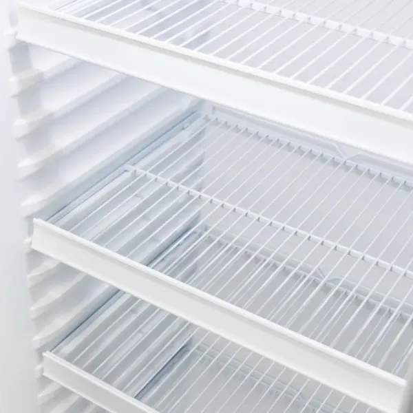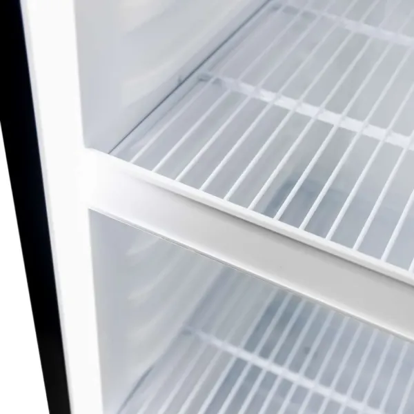 Interiorul vitrinei dispune de cinci polițe reglabile și întărite, adaptabile pentru produse de diferite dimensiuni. Reglarea ușilor și a picioarelor, împreună cu roțile integrate, facilitează mutarea și amplasarea vitrinei în spații variate. Controlul manual permite setarea ușoară a temperaturii, asigurând condiții optime pentru toate tipurile de alimente refrigerate.