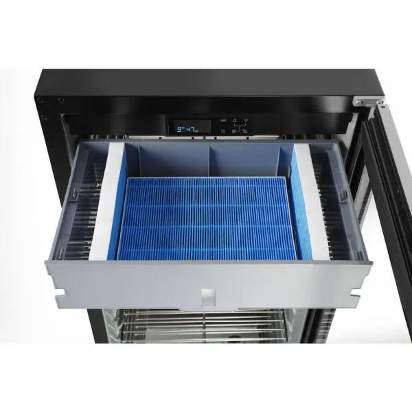 Acest frigider maturat carne recreează microclimatul perfect pentru maturarea naturală a cărnii, prin controlul precis al temperaturii și umidității. Tehnologia modernă integrată permite o ventilație constantă și o sterilizare eficientă, garantând un mediu sigur și igienic pentru produse. Ușile din sticlă Low-E protejează carnea de razele UV, păstrând calitățile sale nutritive și gustative. Sistemul de alarmă și afișajul digital contribuie la monitorizarea ușoară și la prevenirea eventualelor erori, pentru o maturare optimă și fără întreruperi.