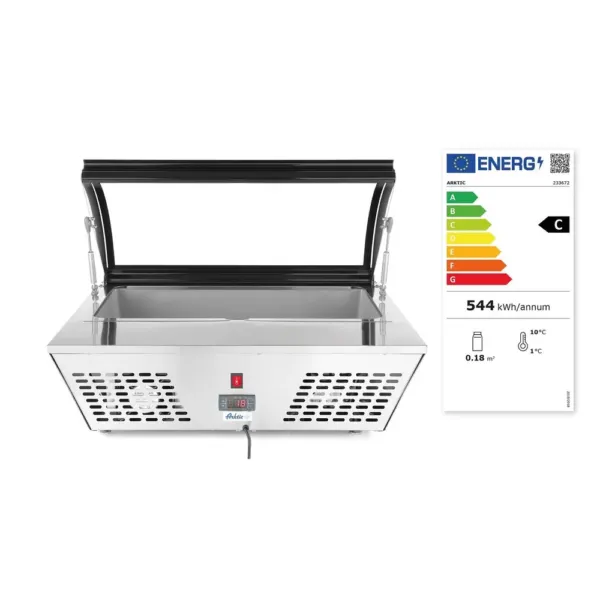 Datorita sistemului de racire directa cu dezghetare automata, vitrina mentine o temperatura constanta in intervalul 0-12°C, protejand alimentele impotriva degradarii. Afisajul digital si termostatul electronic permit setari precise, adaptate tipului de produs expus. Este o alegere excelenta pentru pastrarea salatelor, sosurilor, toppingurilor pentru pizza sau a garniturilor la temperaturi sigure.