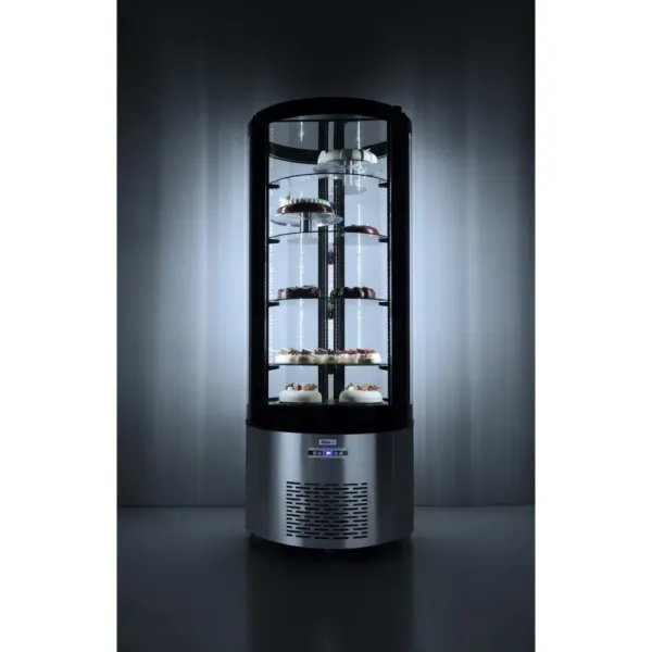 Vitrina rotunda refrigerata Arktic 360 litri inox geam dublu, 1750 mm imbina perfect estetica moderna cu functionalitatea profesionala. Constructia din inox si geamul dublu ofera atat un aspect premium, cat si o izolatie eficienta, contribuind la economisirea energiei si la reducerea formarii condensului. Forma rotunda faciliteaza o vizibilitate completa asupra continutului expus, ceea ce o face ideala pentru amplasare in zone de trafic intens din cafenele, restaurante, baruri sau magazine specializate.