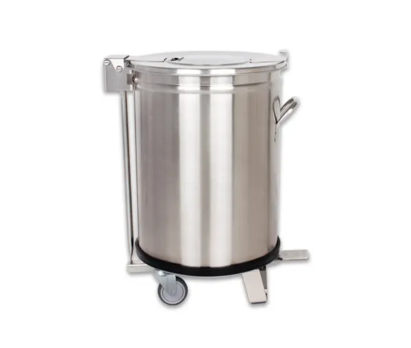Cos inox pentru gunoi cu pedala 50 litri, cu roti, capac rabatabil