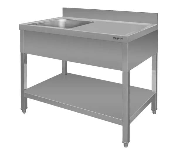 Chiuveta inox cu bazin stanga masca si polita 120x60x85 cm pentru bucatarii profesionale