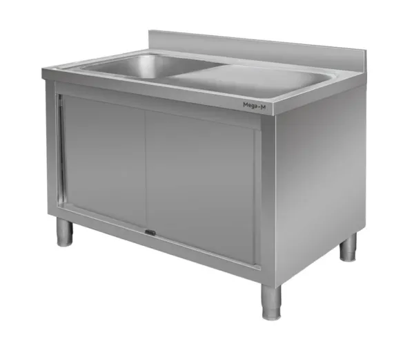 Chiuveta inox tip dulap cu bazin dreapta masca si polita 140x70x85 cm pentru bucatarii profesionale