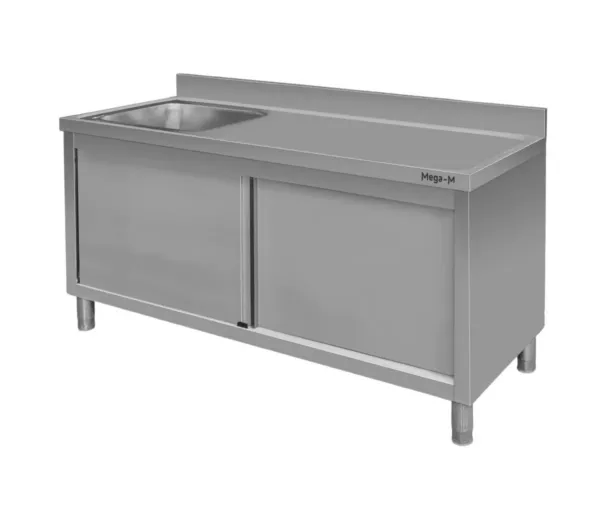 Chiuveta inox sudata cu bazin stanga si dulap 160x60x85 cm pentru bucatarii profesionale