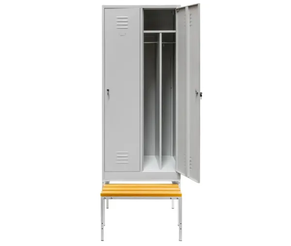 Adauga in cosDulap BHP vestiar pe baza cu banca extensibila si compartimente, 2 usi, S-80 cm, gri, 80x80x223 cm