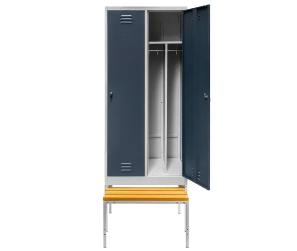 Adauga in cosDulap BHP vestiar pe baza cu banca extensibila, 2 usi, S-80 cm, gri/albastru, 80x80x223 cm