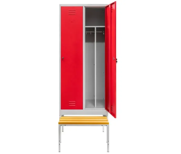 Adauga in cosDulap BHP vestiar pe baza cu banca extensibila si compartimente, 2 usi, S-80 cm, gri/rosu, 80x80x223 cm