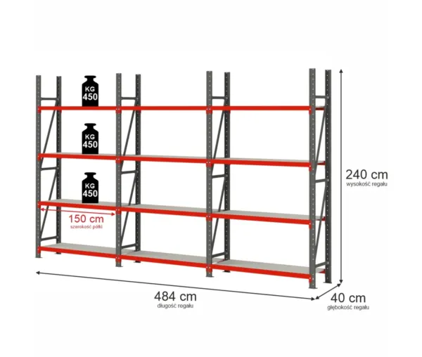 Adauga in cosRaft metalic 12 polite, inaltime 240 cm, lungime 484 cm, adancime 40 cm, capacitate 450 kg